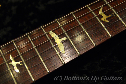 2002年に企画された『Snakewood Collection』の一本。 ハカランダと同様に希少な材『スネークウッド』を指板とヘッドの突板に使用しています。 某ギター誌に掲載された一品です。(当時の資料を印刷してお付けいたします) Neck : South American mahogany Fingerboard : Snakewood Top : Quilted maple Back : South American mahogany Headstock Veneer : Snakewood SOLD