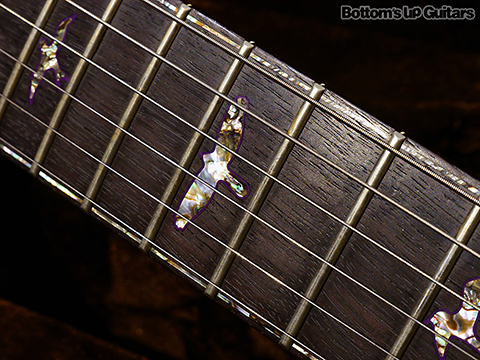 指板: Green heart abalone birds with purple sugilite outlines and green heart abalone purfling