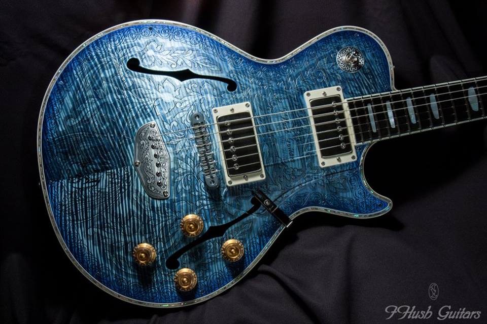 IHush Guitars RIGHTEOUS Alumitop Dragon Figured - Blue Green Burst / Red Mahogany - |