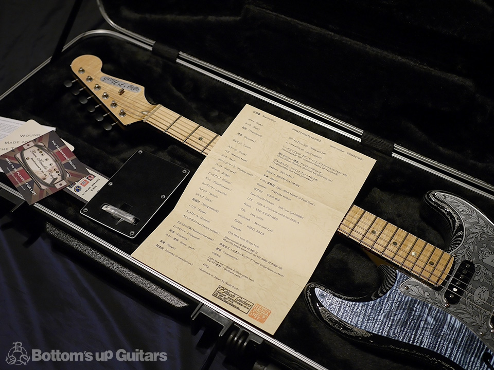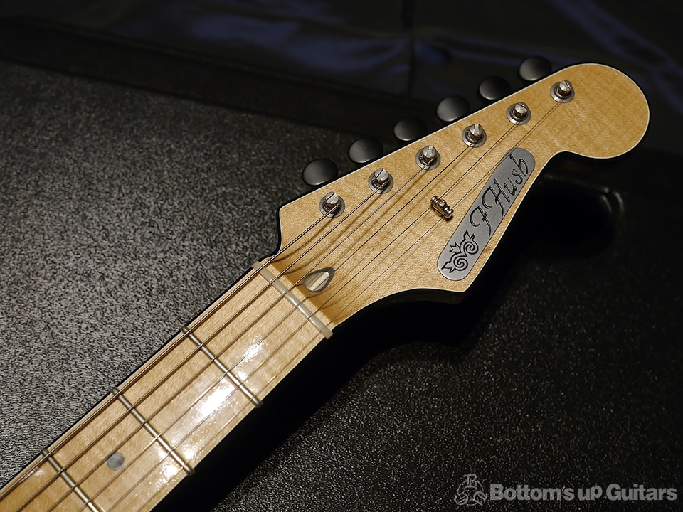 IHush Guitars STRATO PIRATE FIGURED - Light blue top / Black & Silver grain back - [ アイハッシュギターズ ] |